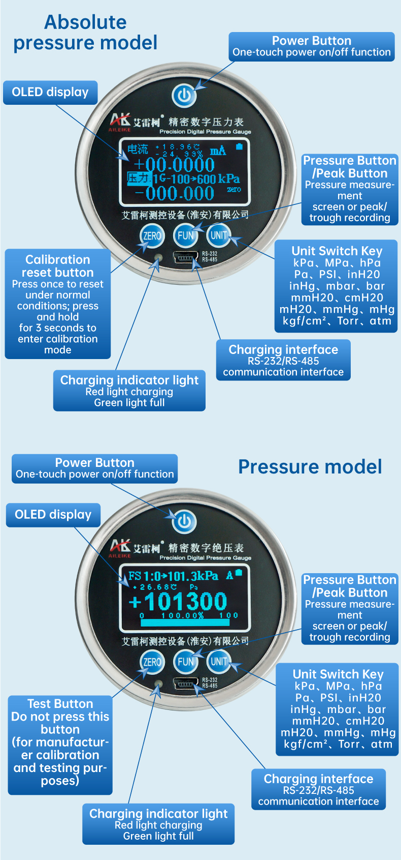 - 1~0~600~1000bar/ 1.013-0bar abs(Pressure selectable) |