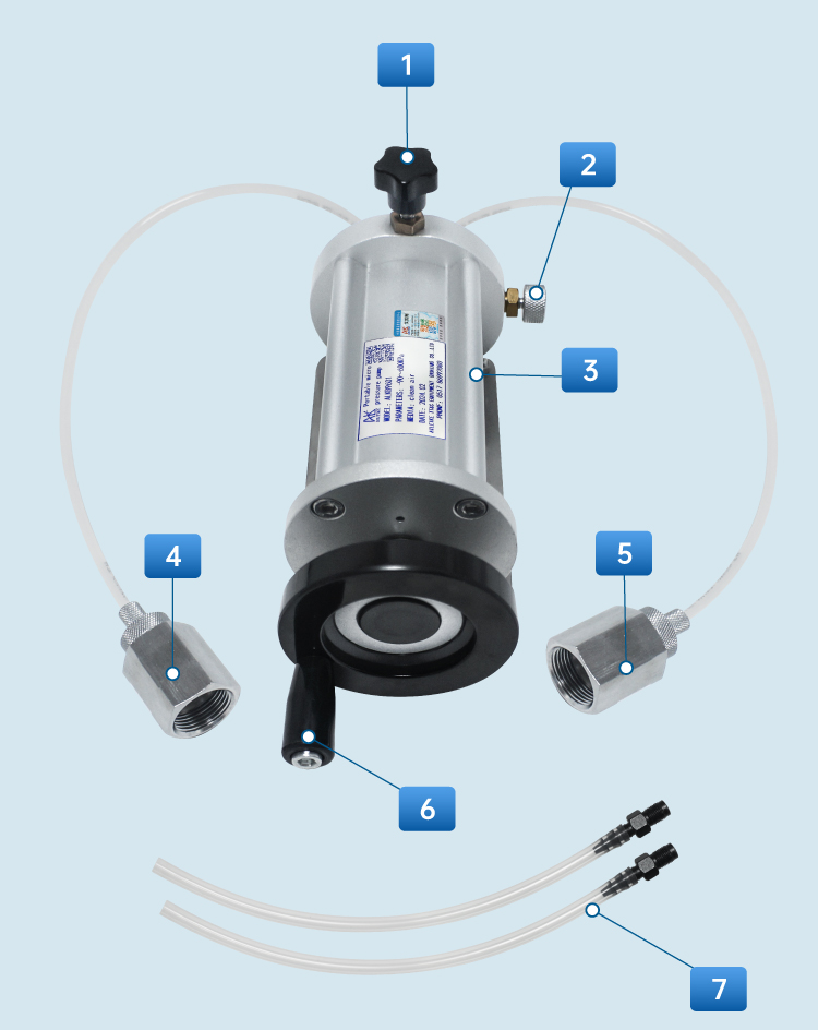 مقبض الضبط الدقيق في اتجاه عقارب الساعة: زيادة الضغط/الإغلاق عكس اتجاه عقارب الساعة: تقليل الضغط/التحرير