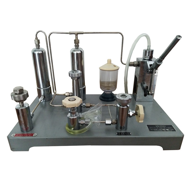 Alkt82a, a dual-purpose calibration platform for oxygen gauge and pressure gauge, adopts manual plunger pump to pressurize under the action of lever, which is light in weight and labor-saving; the instrument itself is equipped with secondary oil-water isolation device, which has reasonable structure, neat arrangement, stable performance and safe and reliable. It is suitable for the verification of pressure gauge, oxygen gauge and other forbidden oil pressure gauges in measuring department, industrial and mining instrument room.