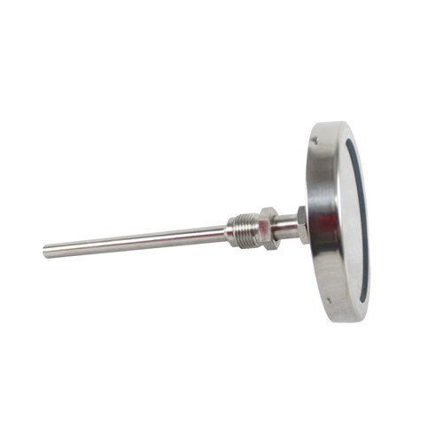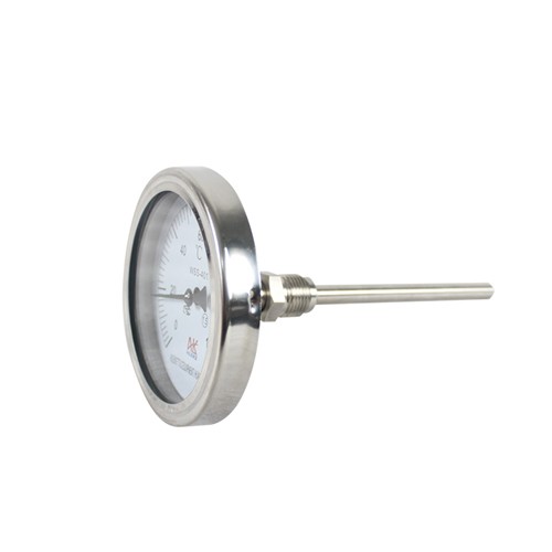 Bimetallic thermometer is a single-needle indicating thermometer in which one end of the bimetallic sheet is fixed and the other free end is connected with the pointer needle, which rotates with the change of temperature and drives the pointer to rotate to indicate the temperature.