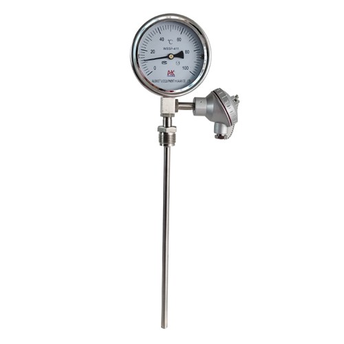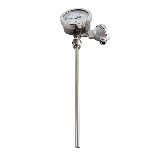 WSS series bimetallic thermometers with thermocouple (resistance) and temperature transmitter are temperature sensors for local display and remote transmission of electrical signals. The platinum resistance element is installed in the temperature measuring rod of bimetal thermometer, which can not only indicate the temperature on site, but also transmit the signals of thermocouple (resistance) and two-wire temperature transmitter. As a new generation of thermometer, wssp-411 bimetal thermometer with thermal resistance can be widely used in metallurgical, petrochemical, electric power, light textile, food and other industrial sectors.