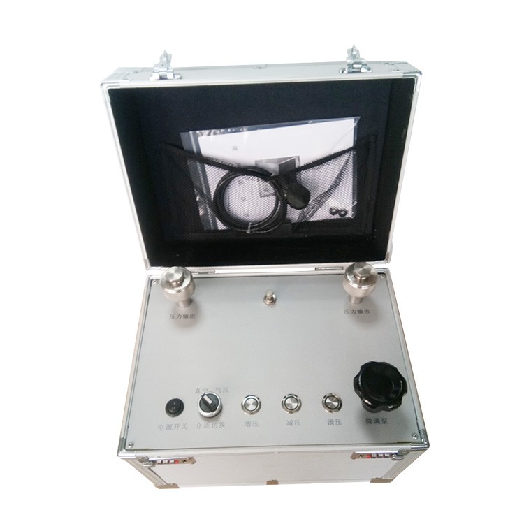The electric pressure calibration table is a portable instrument powered by AC power. The pressure is adjusted by the button. It is simple to use and the pressure is stable.