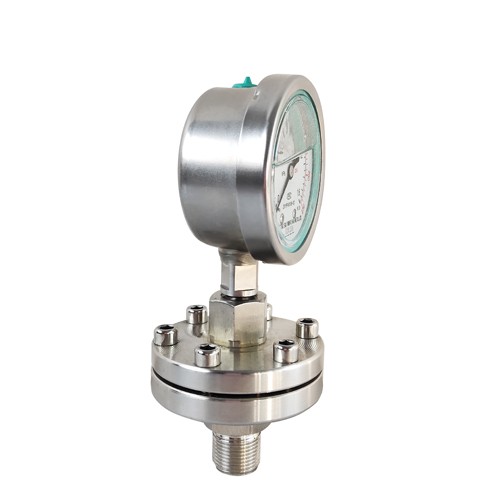 The corrosion resistance of diaphragm pressure gauge can be ensured by proper selection of diaphragm, flange and sealing ring materials in contact with the measuring medium.