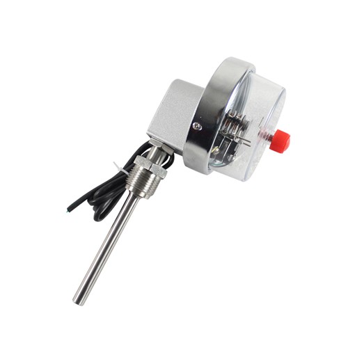 Bimetallic thermometer is a single-needle indicating thermometer in which one end of the bimetallic sheet is fixed and the other free end is connected with the pointer needle, which rotates with the change of temperature and drives the pointer to rotate to indicate the temperature.