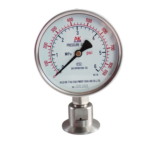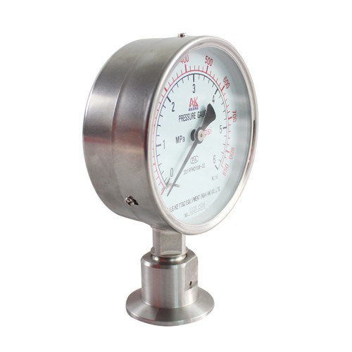 Yb-100mc sanitary diaphragm pressure gauge is used in petroleum, chemical, chemical fiber, dyeing, pharmaceutical, alkali food and other industrial sectors. Measuring corrosive, high viscosity, easy to crystallize, easy to solidify, high temperature, the pressure of liquid, gas or granular solid medium, and the occasions where the measuring medium must be prevented from directly entering the pressure instrument and sediment accumulation and easy to clean.