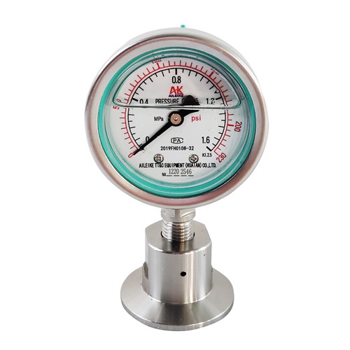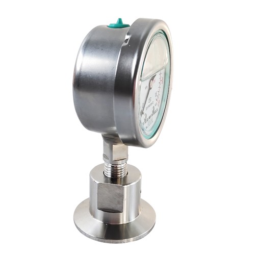 The Sanitary diaphragm shock proof pressure gauge y-60bfzmc is used in petroleum, chemical industry, chemical fiber, dyeing and chemical industry, pharmaceutical industry, alkali food industry and other industries. Because it can measure the corrosive, high viscosity, easy to crystallize, easy to solidify, high temperature, high pressure of liquid, gas or granular solid medium, and must avoid measuring medium directly into the pressure instrument and prevent sediment accumulation and easy to clean