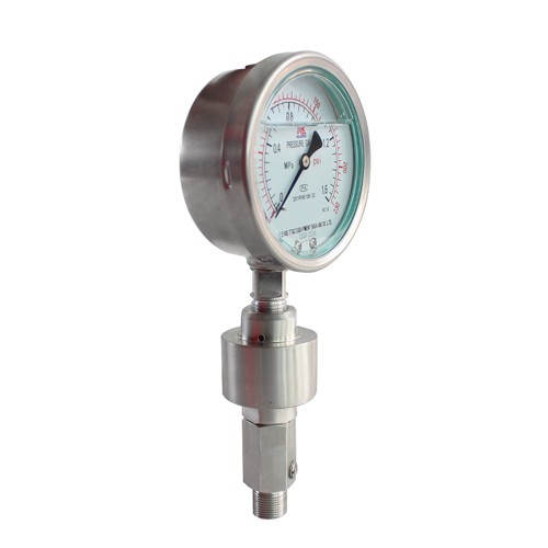 The corrosion resistance of the diaphragm pressure gauge can be ensured by the proper selection of materials for the diaphragm, flange and sealing ring in contact with the measuring medium.
