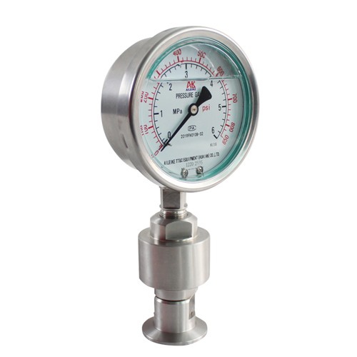 Yb-100fzmzmc stainless steel diaphragm shock resistant pressure gauge is used in petroleum, chemical, chemical fiber, dyeing, pharmaceutical, alkali food and other industrial sectors. Measuring corrosive, high viscosity, easy to crystallize, easy to solidify, high temperature, the pressure of liquid, gas or granular solid medium, and the occasions where the measuring medium must be prevented from directly entering the pressure instrument and sediment accumulation and easy to clean.