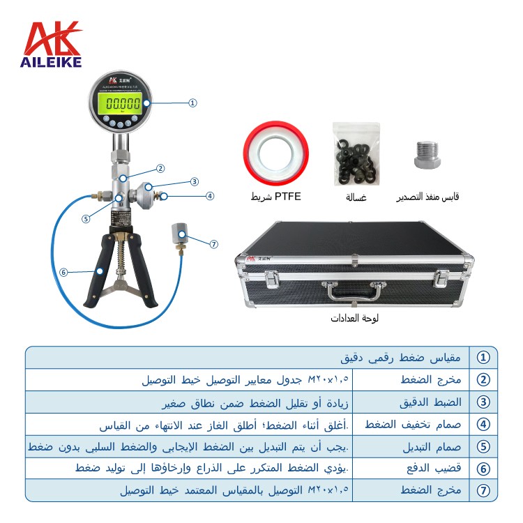 معاير ضغط بحري*1 منفذ تفريغ*1 صندوق أجهزة قياس*1 حلقات مانعة للتسرب*40 شريط مانع للتسرب من مادة PTFE*1 محولات تحويل الضغط*14 (مواصفات المحولات كما يلي) |