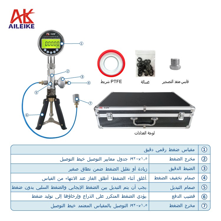 مضخة هواء يدوية AILEIKE104SA (مع شاشة رقمية) مقياس ضغط بحري ALKC400HA1 مقياس ضغط محمول باليد نطاق الضغط السلبي: -0.95 إلى 35 بار