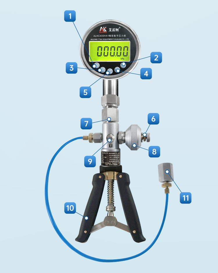 مضخة معايرة الضغط الإيجابي/السلبي AILEIKE ALKT700 - تشغيل يدوي -0.95 إلى 60 بار  3 منافذ هواء نظيف للضغط