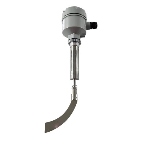 The resistance rotating material level switch blade is connected with the clutch by means of the transmission shaft, and the motor maintains normal operation when the material is not in contact with the blade; when the blade touches the material, the motor power supply is disconnected and stops moving, and the mechanism outputs a contact signal at the same time to indicate that the material level has reached the set height.