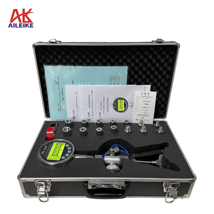 Pompa pneumatik genggam *1 buah Pengukur tekanan digital presisi *1 buah Sumbat port output *1 buah Kotak alat *1 buah Gasket *40 buah Pita penyegel PTFE *1 buah Sambungan konversi tekanan *14 buah (Spesifikasi sambungan sebagai berikut) |