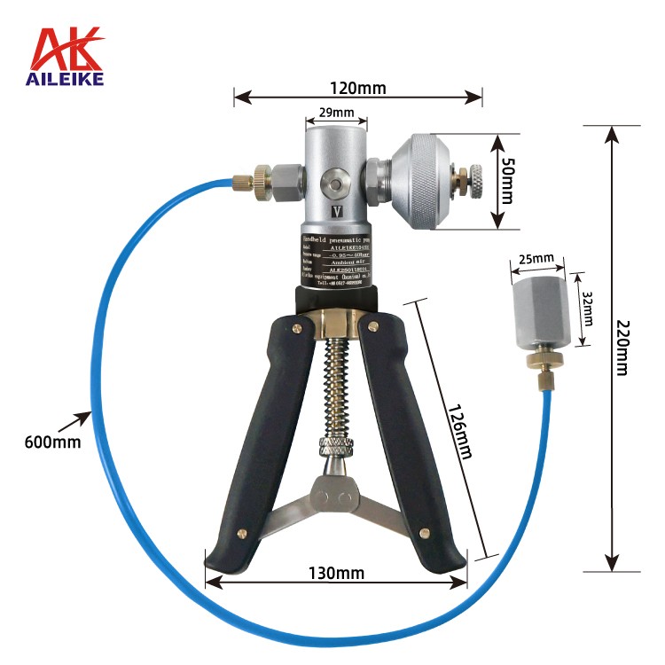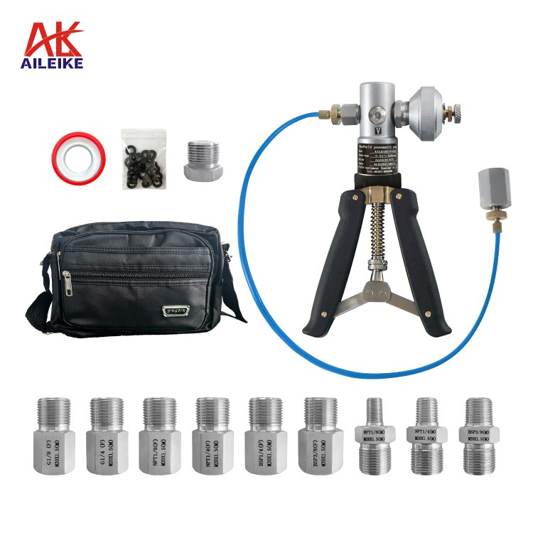 Pompa pneumatik genggam * 1 buah Sumbat port keluaran * 1 buah Tas portabel * 1 buah Gasket * 40 buah Pita penyegelan PTFE * 1 buah Sambungan konversi tekanan * 9 buah (Spesifikasi sambungan sebagai berikut) |