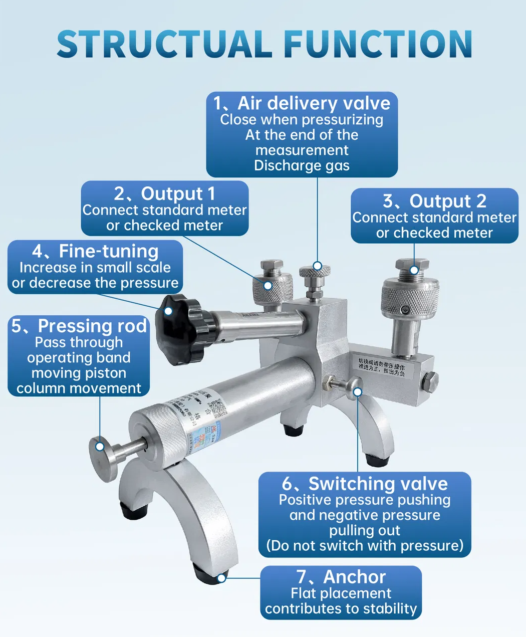 Metrology and Testing Institutions: Serves as a standard pressure source for the calibration and verification of pressure measuring instruments, ensuring the accuracy and consistency of measurement traceability.