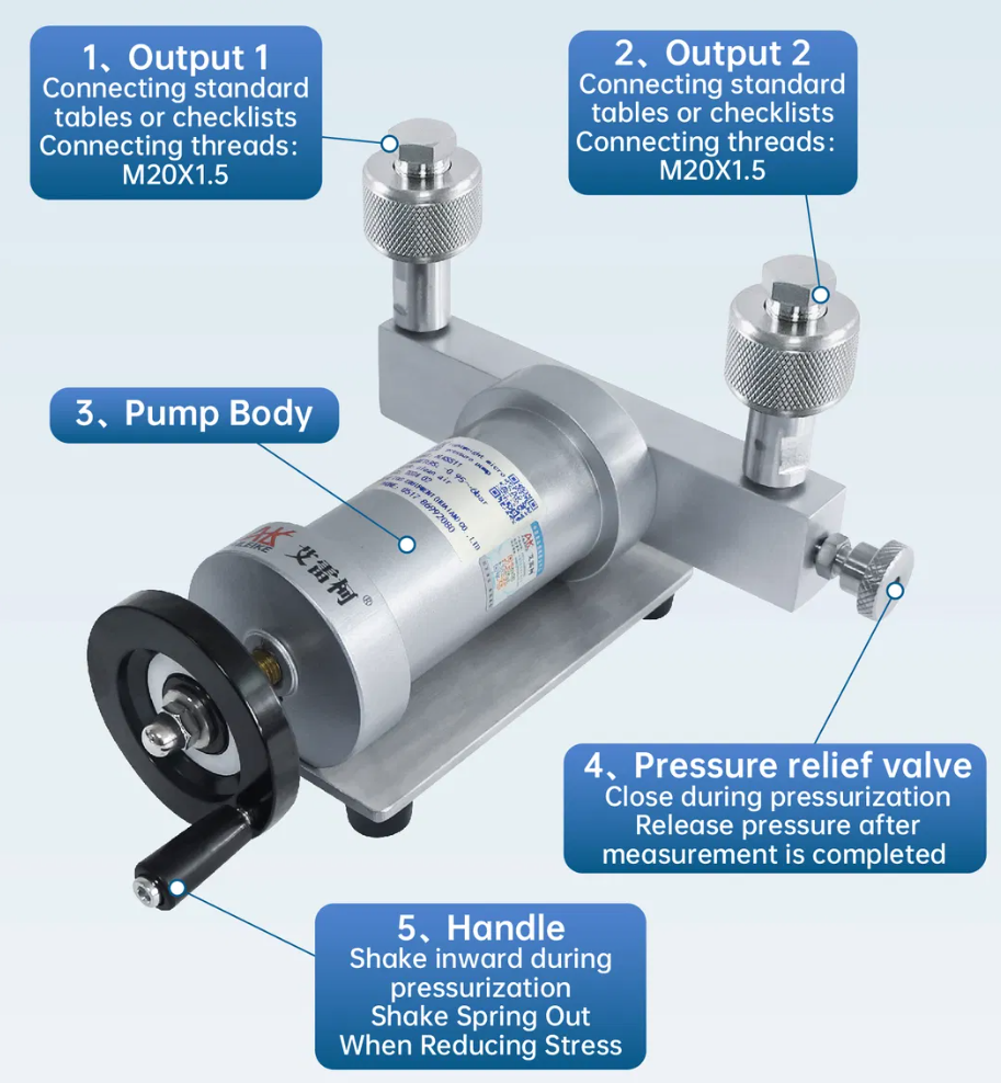 Positive/Negative Pressure Switching Technology: The device generates positive or negative pressure through manual operation of the pressure generation component, allowing for convenient switching between the two modes. During operation, ensure the relief valve is closed to maintain pressure stability; open the relief valve to release pressure after calibration is complete.