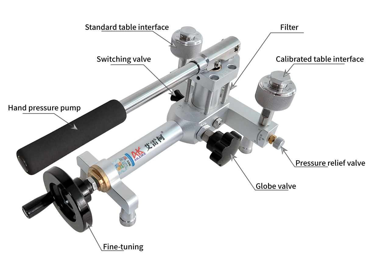 The ALKB9602 portable air pressure pump is a high-precision portable air pressure generating device designed specifically for laboratory and field pressure instrument calibration. As an important auxiliary equipment in the field of pressure calibration, it is used in conjunction with pressure gauges to complete pressure instrument calibration and testing work, and is a key tool in pressure instrument testing work. The product adopts an open design, which features simple operation, effortless operation, stable pressure rise and fall, low leakage, and easy maintenance, providing reliable guarantee for the precise calibration of pressure instruments.