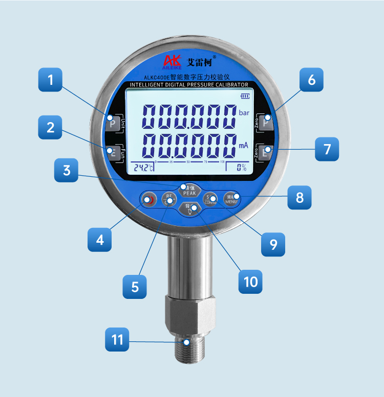 Botão de calibração zero Zero em um botão sem corrente Botão de menu |